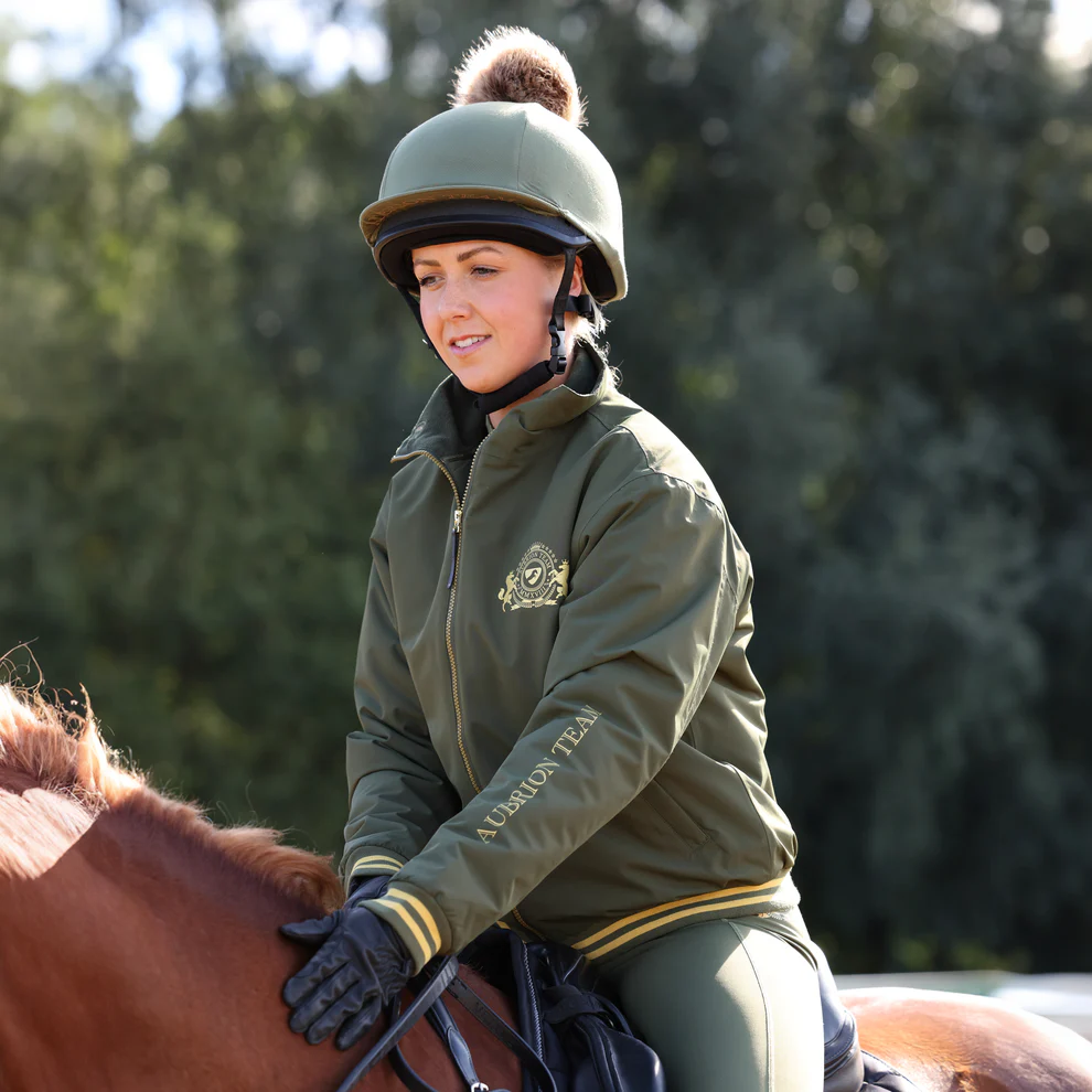 Keep a glamorous feel despite the weather with the Aubrion Team blouson jacket. Designed with a classic cuffed waist, the look is flattering and sporty. The easy to wear lightly padded jacket is lined with embossed satin for a smart look. Fleece lining to the highline collar is soft and comfortable and attractively trimmed with embroidery detail. The detail: waterproof & breathable, taped seams for maximum weather protection, highline neck, hardwearing zip with chin guard, inner storm flap, sport fit, elasticated waistband and cuffs, two outer zip pockets and Aubrion Team prints. Outer fabric waterproof rating: 5000mm with breathability rating 5000g/m2/24h. DWR (durable water repellent) finish causes moisture to shed, bead up and roll off the outer surface of the garment to help maintain breathability.