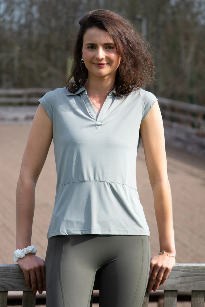 Styled with a little Mochara heart detail on the front & a brushed silver popper detail on the back, this classy shirt is designed with a looser flattering fit & smart collared v neck. Looks perfect teamed with Mochara leggings.