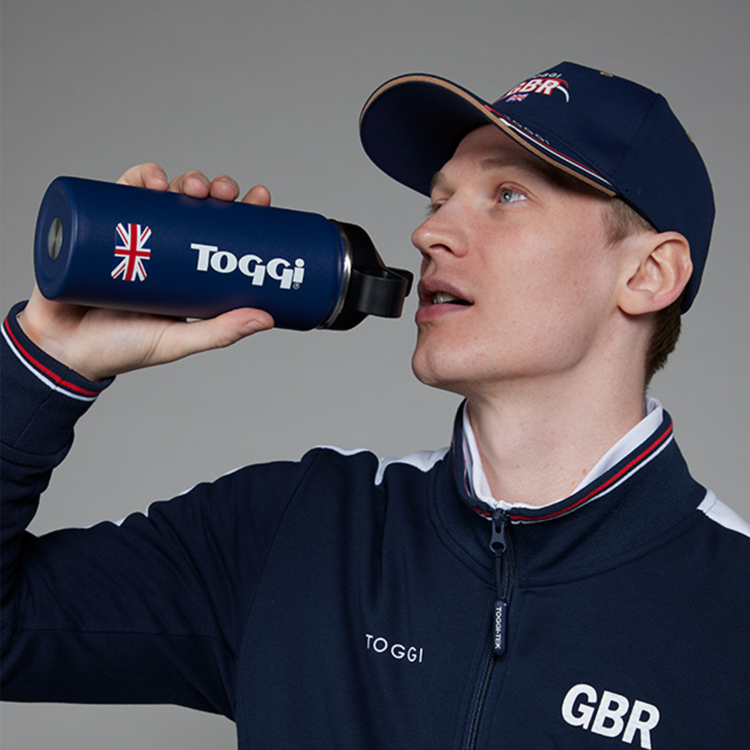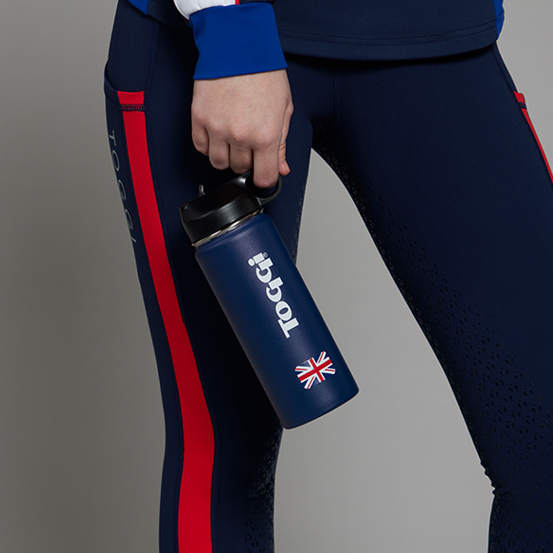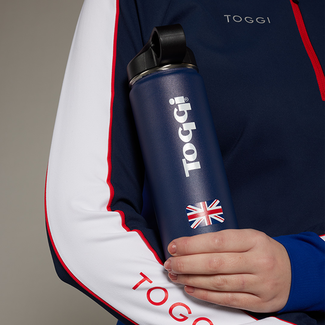Crafted from stainless steel in Navy blue colour, this lightweight bottle features British Equestrian and Toggi branding.